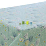 Combines functionality with beauty. With a duckegg coloured background and seed pod flowers, it really is a scandi delight! The durable oilcloth material ensures easy cleaning and long-lasting use, perfect for everyday meals or special occasions.
